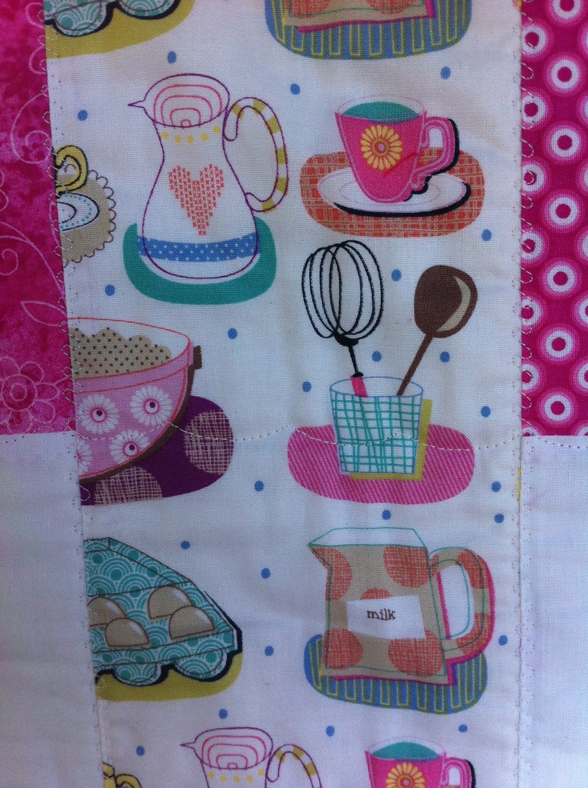 Choosing a binding was easy - a hot pink solid worked well with both the front and the back.