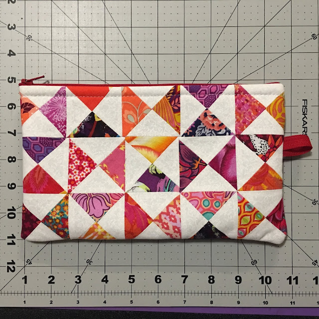 All those little triangles left over from the stitch and flip tulips were converted into this little zippered pouch - which I am keeping for myself. See I am not so selfless.