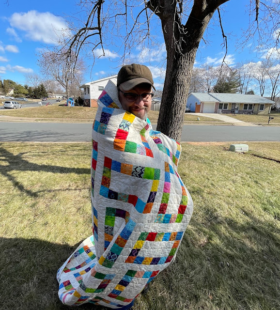ReplyDeleteCongratulations Preeti, the quilt is beautiful, I especially like your version with the black background. Paul is also a wonderful model!