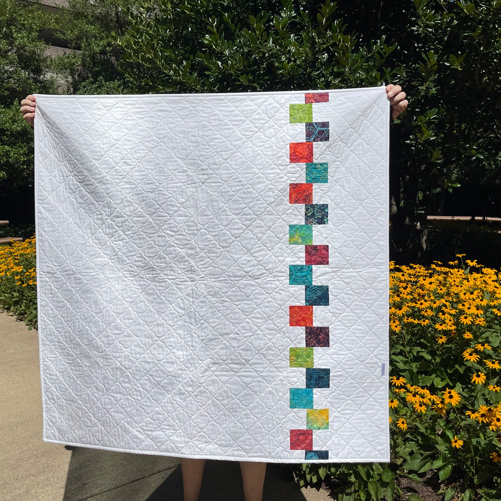 I quilted diagonal lines using my walking foot. The Backing and Binding are Island Batik Solid White.