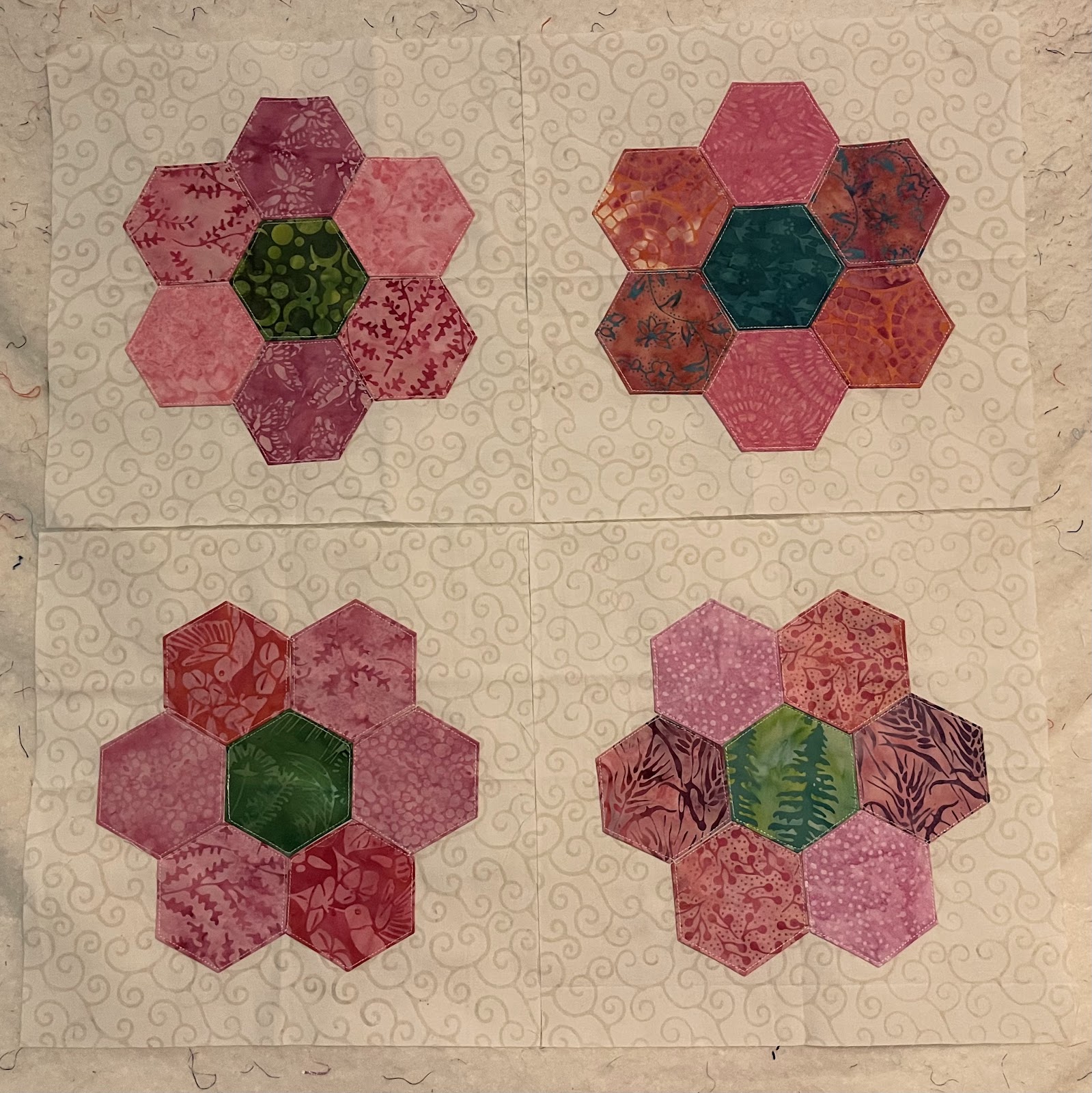 With my favorite pinks and oranges, this is a beautiful collection and I created about six paper-pieced designs in EQ8 that would be perfect for celebration/festive quilts.