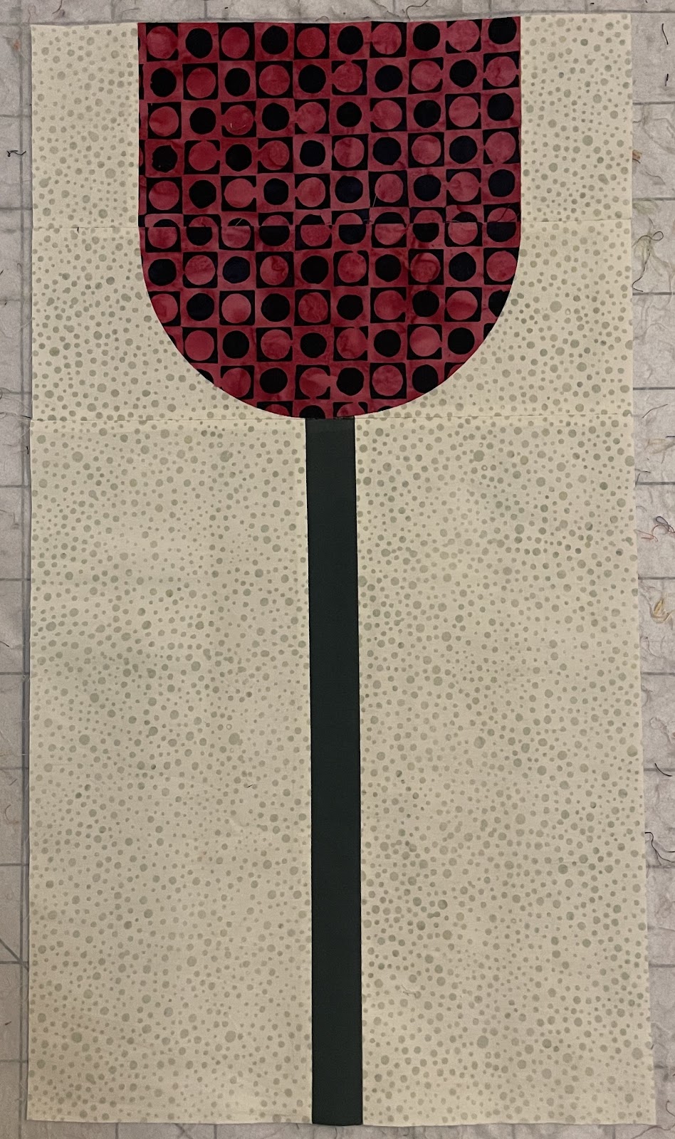 I wanted a modern take on the Quilt of Valor theme. Using turquoise instead of traditional blue was one way of achieving that objective. A longitudinal design, instead of the usual square blocks, helped get me there. Long borders (only on the sides) and vertical quilting lines emphasize the design.